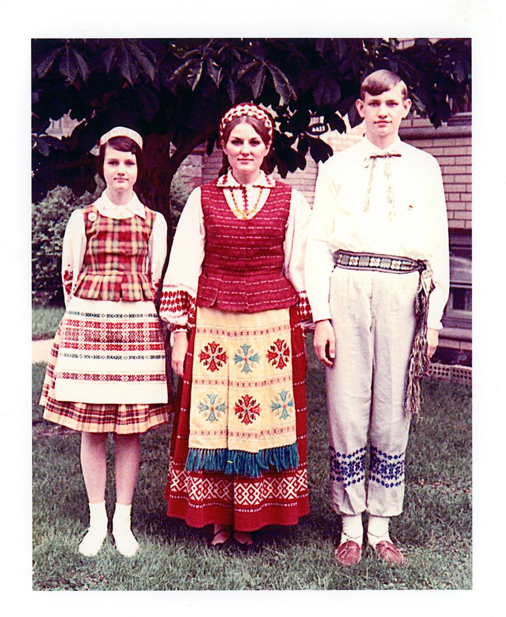 in their Lithuanian national costumes