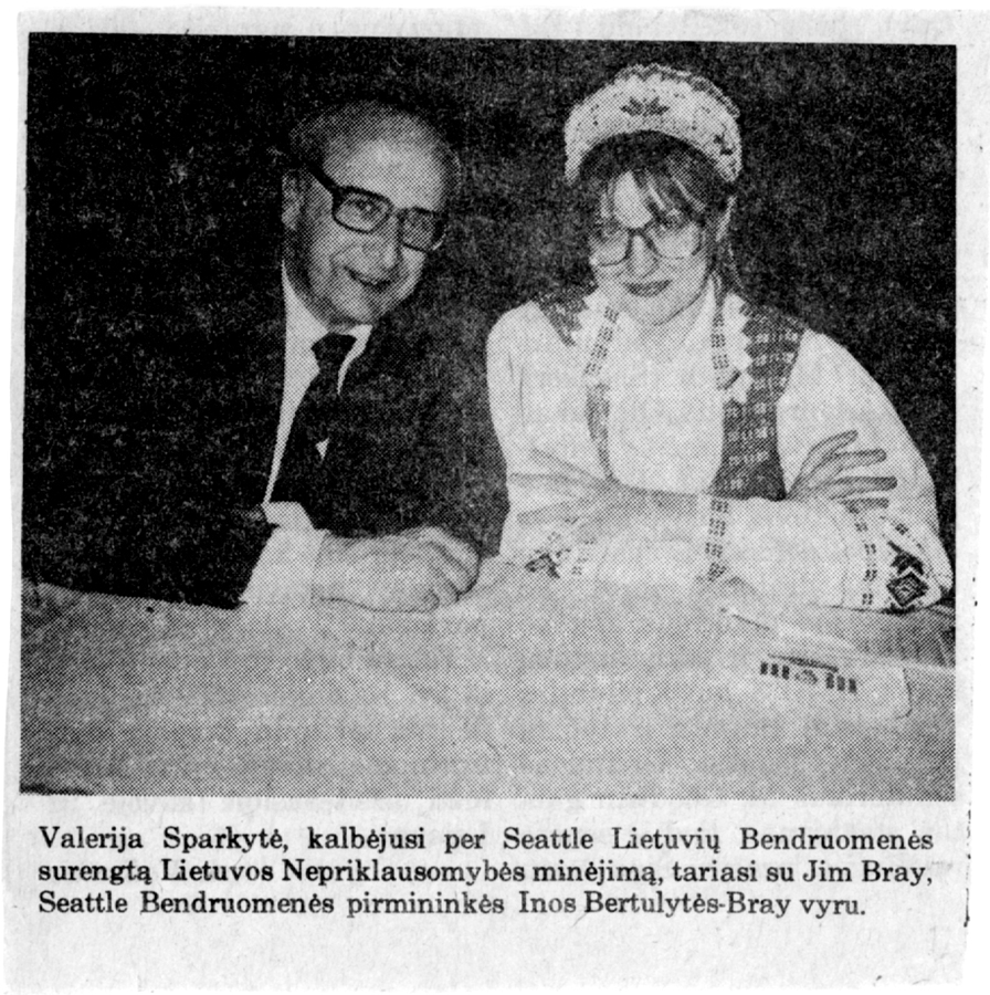 Ina Bertulyte-Bray, was then President of Seattle's Lithuanian-American Community.