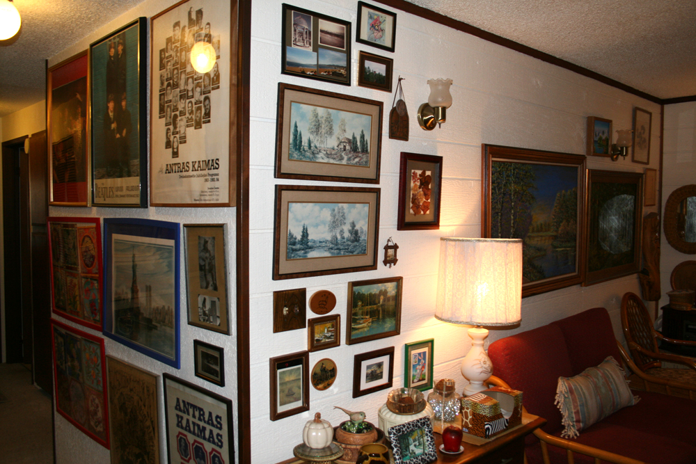 The gallery in the hallway - posters from when her sister, Nijole, was in the Lithuanian comedy improv troupe "Antras Kaimas" (Second Village!)